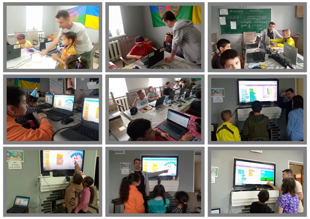 У класі діти навчаються програмуванню з мультиплікацією на Scratch та робототехниці Lego Spake Education з сучасними ноутбуками та спеціальними конструкторами з хабами – програматорами робототехніки Lego Spake. Заняття проходять по соціальній програмі від ГО Золотоніська община циган “Аме Рома” і є абсолютно безкоштовними для дітей…