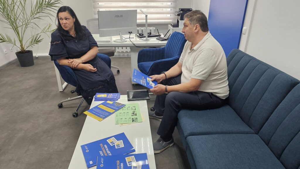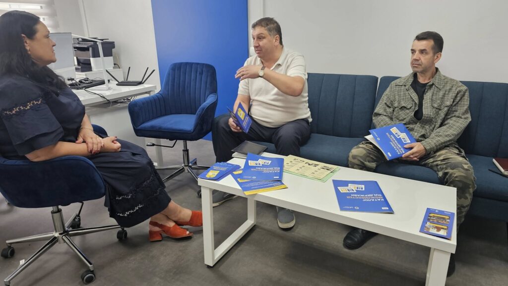 Відбулася зустріч у Золотоніській міськрайонній філії Черкаського обласного центру зайнятості з директором центру Людмилою Павліченко та провідними спеціалістами центру з директором ЗОЦ “Аме Рома” Бамбула Володимир. На зустрічі обговорилися питання стосовно нової програми підтримки населення по грантовим програмам для створення або розвитку бізнесу. Це була так би мовити тематична зустріч про можливу державну підтримку для відкриття або розвитку власної справи зі створенням робочих місць і відбувалася вона у спеціалізованому новоствореному офісі в центрі занятості, який є функціональним, стильним, з сучасним інтер’єром, в ньому затишно і комфортно, цей офіс має назву: Офіс підтримки мікро і малого бізнесу «Зроблено в Україні». Ця грантова програма діє як фінансова підтримка від держави за підтримки Міністерства Економіки України, державної програми «Е-Робота», державної служби зайнятості, електронного порталу «Дія» та партнерства «Ощадбанк».